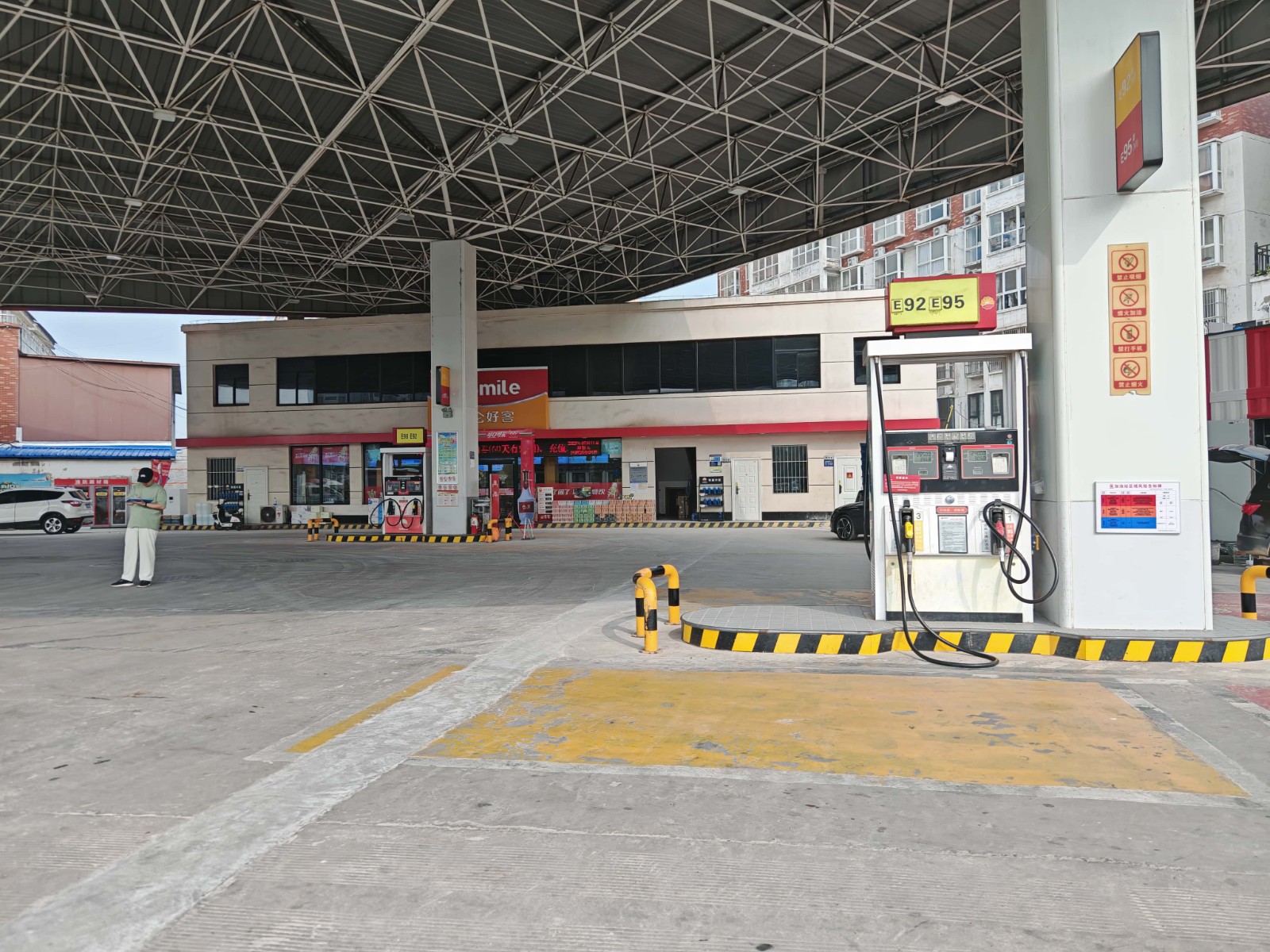 項(xiàng)目簡介 | 中國石油天然氣股份有限公司河南商丘第六十六加油站位于商丘市文化路與中州路交叉口西北角。該加油站自上次取得危險(xiǎn)化學(xué)品經(jīng)營許可證三年以來,未發(fā)生過安全生產(chǎn)事故;2025年6月在罩棚東南側(cè)新建一處汽車充電區(qū),包含7個(gè)汽車充電樁、一臺充電樁主機(jī)柜和一座箱式變壓器;2025年6月,加油作業(yè)區(qū)內(nèi)汽油加油機(jī)旁各新裝一臺可燃?xì)怏w探測報(bào)警器;2025年7月,站內(nèi)原洗車區(qū)和衛(wèi)生間拆除,在原地新建一座汽車餐廳(無明火廚具);加油站站內(nèi)其他設(shè)備設(shè)施及周邊環(huán)境未發(fā)生變化。 該加油站占地面積約2047.56m2,現(xiàn)有員工7人,其中安全生產(chǎn)管理人員1人,無特種作業(yè)人員;《危險(xiǎn)化學(xué)品經(jīng)營許可證》(證書編號:豫N?;?jīng)字[2024]053),有效期限為2022年11月21日至2025年11月20日,許可范圍:乙醇汽油、柴油。 該加油站有地埋式儲油罐4座(雙層罐),其中汽油罐3座(1×20m3+2×30m3)、柴油罐1座(1×20m3);設(shè)有加油機(jī)4臺。根據(jù)GB50156-2021《汽車加油加氣加氫站技術(shù)標(biāo)準(zhǔn)》中加油站分級的規(guī)定,折合計(jì)算油罐總?cè)莘e為90m3(柴油折半計(jì)入),屬于三級加油站。 | |||