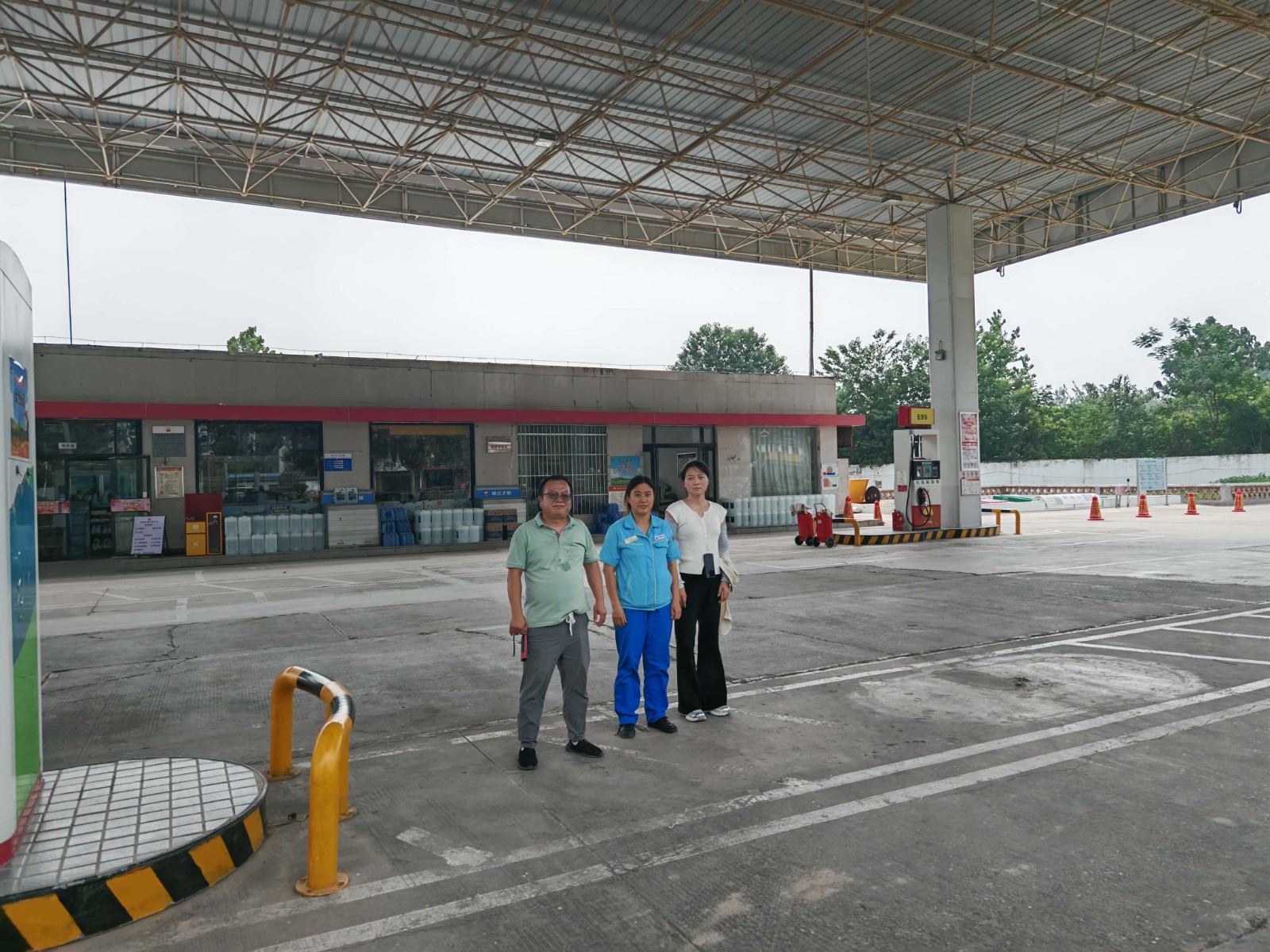 項(xiàng)目簡(jiǎn)介 | 中國(guó)石油天然氣股份有限公司河南柘城第八加油站位于柘睢公路西側(cè)(富強(qiáng)路西余井村西側(cè))。該加油站自上次取得危險(xiǎn)化學(xué)品經(jīng)營(yíng)許可證三年以來(lái),未發(fā)生過(guò)安全生產(chǎn)事故;2024年5月,站內(nèi)西部空地新設(shè)置一座洗車機(jī);加油站站內(nèi)其他設(shè)備設(shè)施及周邊環(huán)境未發(fā)生變化。 該加油站占地面積約4812.57m2,現(xiàn)有員工4人,其中安全生產(chǎn)管理人員1人,無(wú)特種作業(yè)人員;《危險(xiǎn)化學(xué)品經(jīng)營(yíng)許可證》(證書編號(hào):豫N危化經(jīng)字[2024]Y002),有效期限為2022年11月21日至2025年11月20日,許可范圍:乙醇汽油、柴油。 該加油站有地埋式儲(chǔ)油罐4座(雙層罐),其中汽油罐2座(2×30m3)、柴油罐2座(2×30m3);設(shè)有加油機(jī)4臺(tái)。根據(jù)GB50156-2021《汽車加油加氣加氫站技術(shù)標(biāo)準(zhǔn)》中加油站分級(jí)的規(guī)定,折合計(jì)算油罐總?cè)莘e為90m3(柴油折半計(jì)入),屬于三級(jí)加油站。 | |||