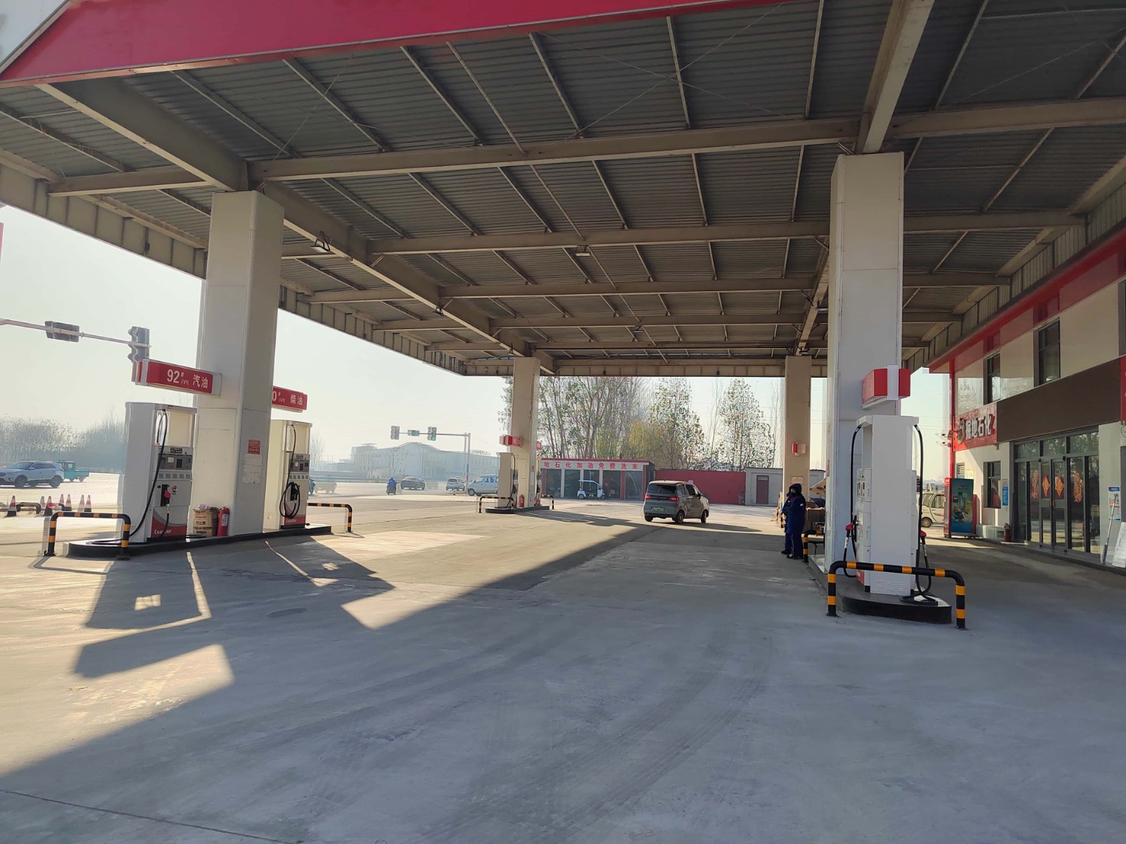 項(xiàng)目簡介 | 濮陽縣西掘地加油站改造工程,位于河南省濮陽市濮陽縣子岸鎮(zhèn)西掘地村西頭。此次改造工程在站區(qū)西北側(cè)罩棚柱子外側(cè)預(yù)留加油島處增設(shè)一臺雙槍汽油加油機(jī),原有4臺單槍加油機(jī)(2臺柴油加油機(jī)、2臺汽油加油機(jī))更換為雙槍加油機(jī),儲罐區(qū)、卸油口及其他相關(guān)配套設(shè)施均不發(fā)生變動,依據(jù)《汽車加油加氣加氫站技術(shù)標(biāo)準(zhǔn)》GB 50156-2021等級劃分標(biāo)準(zhǔn),該站改造后仍屬三級加油站。 | |||